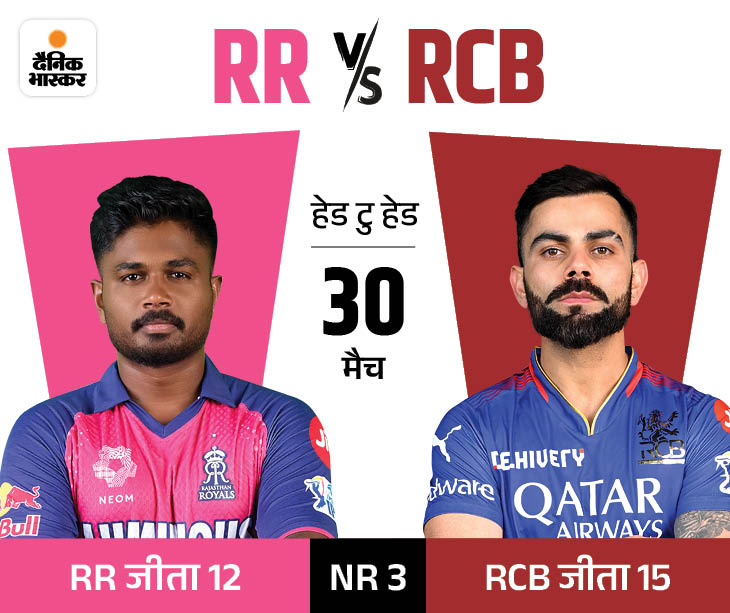 इंडियन प्रीमियर लीग (आईपीएल) के 17वें सीजन का आज 19वां मैच राजस्थान रॉयल्स (आरआर) और रॉयल चैलेंजर्स बैंगलोर (आरसीबी) के बीच खेला जाएगा। मैच जयपुर के सवाई मानसिंह स्टेडियम में शाम 7:30 बजे शुरू होगा. ड्रा शाम 7:00 बजे होगा।