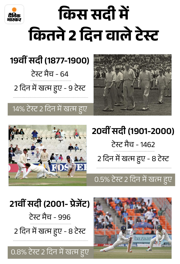 एक तरफ जहां पिछले 3 साल में 4 टेस्ट ऐसे हुए हैं जिनके नतीजे 2 दिन में घोषित हो गए, वहीं दूसरी तरफ मार्च 1946 से अगस्त 2000 के बीच 54 साल ऐसे गुजरे जिनमें एक भी टेस्ट मैच 2 दिन में खत्म नहीं हुआ.