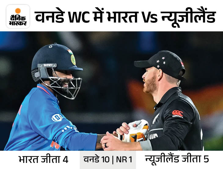विश्व कप में दोनों टीमों के बीच 10 मुकाबले हुए। न्यूजीलैंड ने 5 और भारत ने 4 जीते। जबकि 2019 लीग चरण में दोनों के बीच एक मैच बेनतीजा भी रहा था।