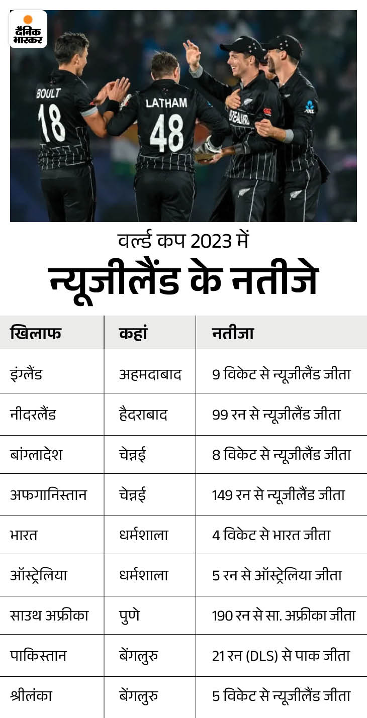 न्यूजीलैंड की जीत के साथ ही यह भी साफ हो गया कि पहले सेमीफाइनल में भारत का मुकाबला न्यूजीलैंड टीम से होगा. यह मैच 15 नवंबर को मुंबई के वानखेड़े स्टेडियम में दोपहर 2 बजे से खेला जाएगा.
