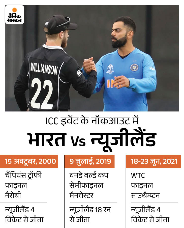 - 2021 वर्ल्ड टेस्ट चैंपियनशिप के फाइनल में भी भारत और न्यूजीलैंड का आमना-सामना हुआ. साउथैंप्टन में 5 दिवसीय टेस्ट में न्यूजीलैंड ने 8 विकेट से जीत दर्ज की.