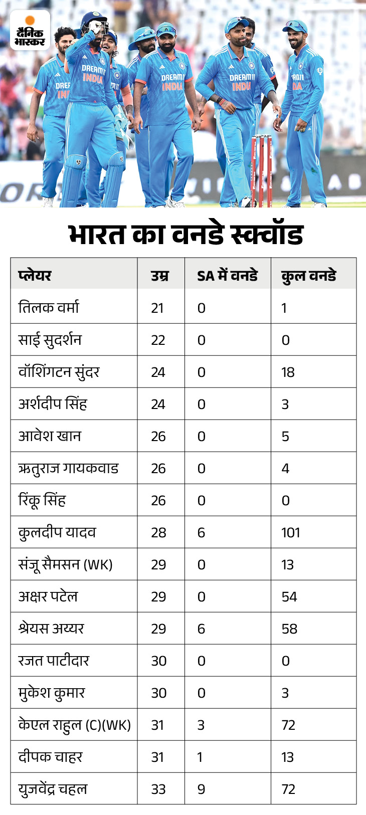 वनडे टीम में 11 खिलाड़ियों की उम्र 30 से कम; सिर्फ 5 को ही दक्षिण अफ्रीका में खेलने का अनुभव है