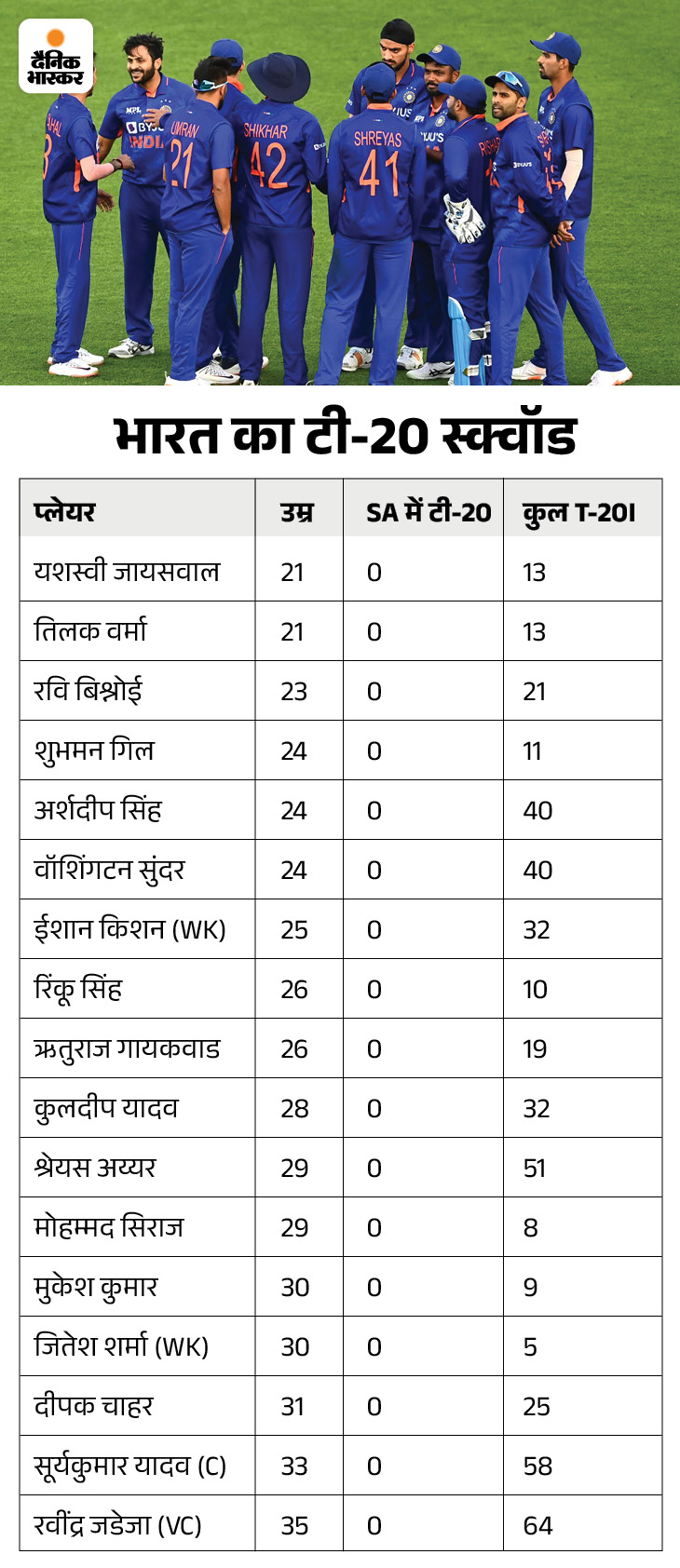 बेशक सभी खिलाड़ियों के पास टी-20 इंटरनेशनल खेलने का अनुभव है, लेकिन इनमें से 7 खिलाड़ी ऐसे भी हैं जो 15 टी-20 इंटरनेशनल मैच भी नहीं खेल सके. इसका मतलब है कि दक्षिण अफ्रीका के खिलाफ इस प्रारूप में हमारे पास सबसे युवा टीम है और हर कोई पहली बार दक्षिण अफ्रीका में टी20 का अनुभव करेगा। सीरीज के 3 टी20 मैच 10, 12 और 14 दिसंबर को खेले जाएंगे.