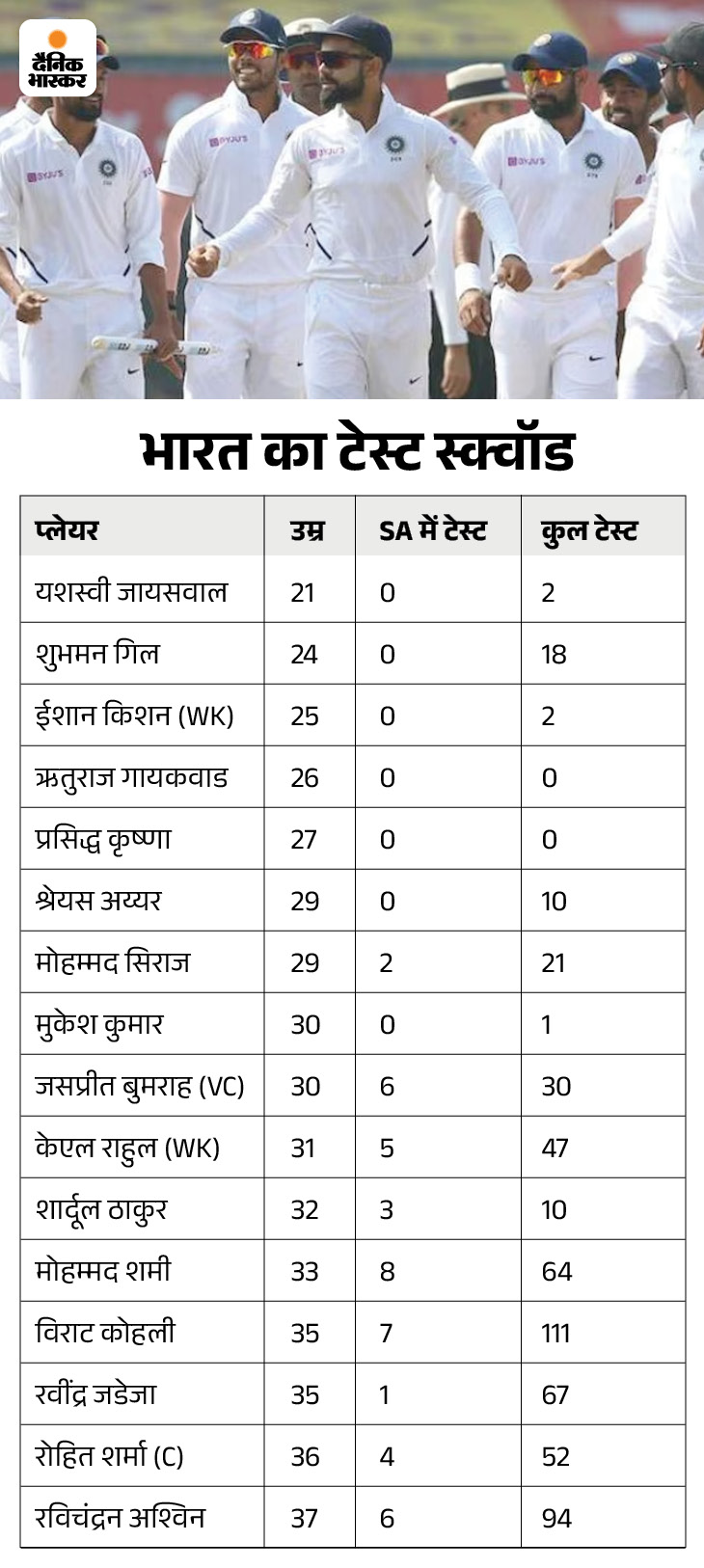 - दक्षिण अफ्रीका के खिलाफ संभावित टेस्ट मैच-11: यशस्वी, रोहित, शुभमन, विराट, श्रेयस, जड़ेजा, राहुल (कीपर), अश्विन, सिराज, शमी, बुमराह।