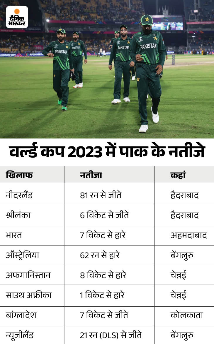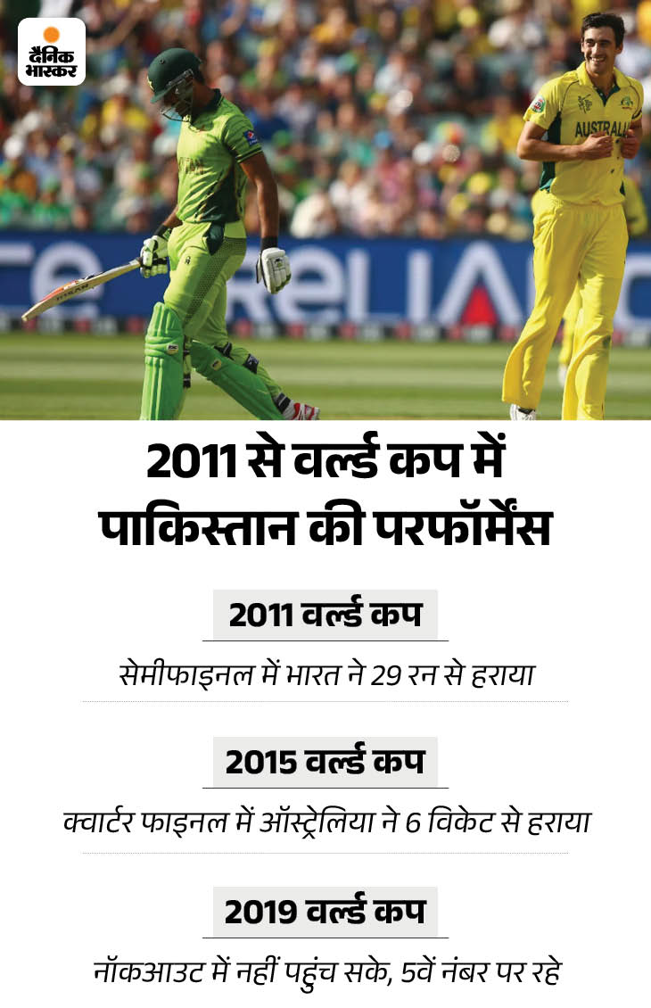 यह लगातार तीसरा विश्व कप है जिसमें पाकिस्तान की टीम सेमीफाइनल तक पहुंचने में असफल रही है। 2015 और 2019 की शुरुआत में पाकिस्तान क्वार्टर फाइनल तक पहुंचने में असफल रहा। पाकिस्तान आखिरी बार 2011 में सेमीफाइनल में पहुंचा था. तब मोहाली में खेले गए मैच में उसे भारत से ही हार का सामना करना पड़ा था. भारत ने वह विश्व कप भी जीता था.