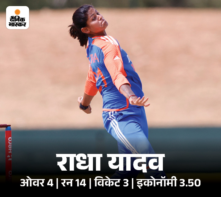 राधा यादव ने 4 बॉलिंग मैचों में 13 रन देकर 3 विकेट लिए। उन्होंने रुमन्ना अहमद को नौकरी से निकाल दिया. फिर 20वें ओवर में उन्होंने कप्तान निगार सुल्ताना और नाहिदा अख्तर के विकेट लिए.