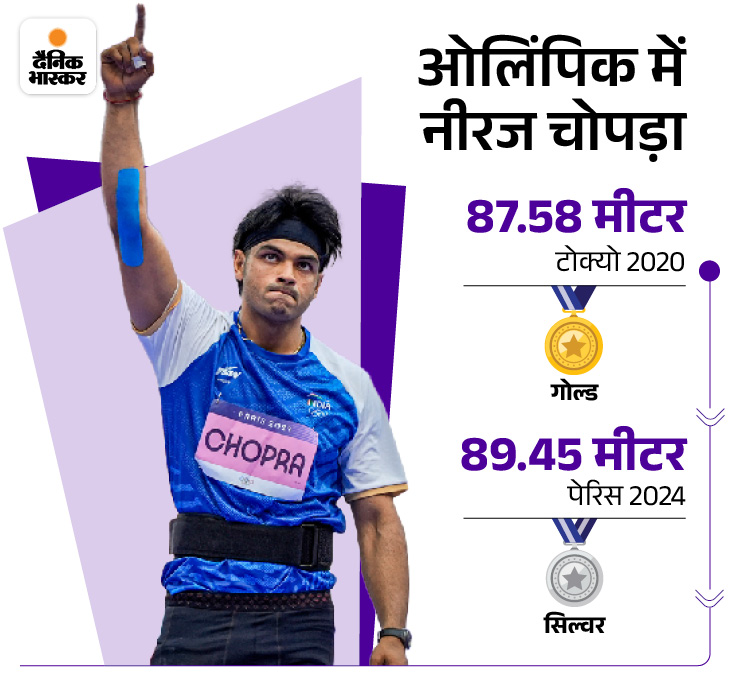 पेरिस ओलंपिक में भाला फेंक स्पर्धा में नीरज चोपड़ा ने भारत के लिए रजत पदक जीता। 26 साल के नीरज ने 89.45 मीटर भाला फेंका और दूसरा स्थान हासिल किया. इसके साथ ही नीरज लगातार दो ओलंपिक खेलों में पदक जीतने वाले तीसरे भारतीय खिलाड़ी बन गए। नीरज से पहले पहलवान सुशील कुमार और थ्रोअर पीवी सिंधु ने लगातार दो ओलंपिक में पदक जीते थे।