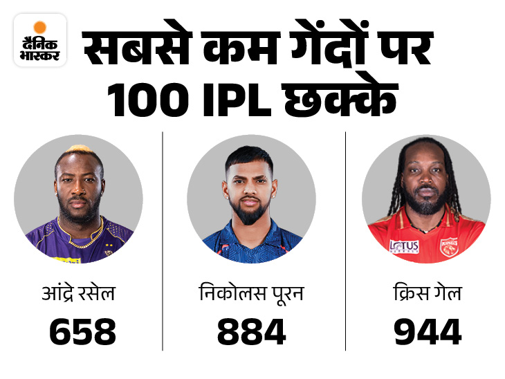 लखनऊ सुपर जाइंट्स के निकोलस पूरन ने बेंगलुरु के खिलाफ अपनी पारी में 5 छक्के लगाए। इसके साथ ही उन्होंने आईपीएल में 100 छक्के भी पूरे कर लिए. पूरन ने 884वीं गेंद पर अपने आईपीएल करियर का 100वां छक्का लगाया. जो आंद्रे रसेल के बाद सबसे कम है. रसेल ने 658वीं गेंद पर 100 छक्के लगाए थे.