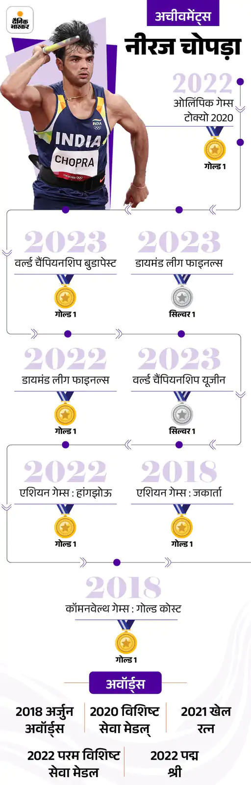 नीरज लगातार दो ओलंपिक में पदक जीतने वाले तीसरे भारतीय खिलाड़ी बन गए हैं। नीरज से पहले पहलवान सुशील कुमार और बैडमिंटन खिलाड़ी पीवी सिंधु ने लगातार दो ओलंपिक में पदक जीते थे।