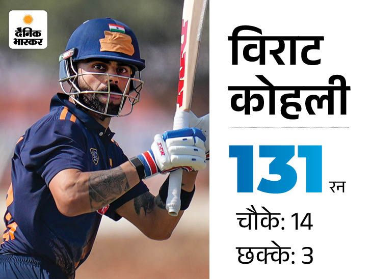 विजय हजारे ट्रॉफी में विराट कोहली और रोहित शर्मा ने अपनी-अपनी टीमों के लिए शतक लगाए. दिल्ली की ओर से खेलते हुए विराट कोहली ने बुधवार को बेंगलुरु में 131 रन बनाए. वहीं जयपुर में रोहित शर्मा ने 155 रन की पारी खेली.