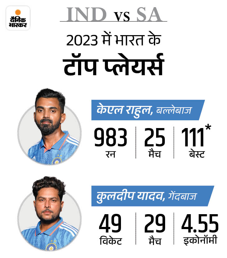 वनडे सीरीज में केएल राहुल भारतीय टीम के कप्तान हैं. इस साल भारत के लिए सबसे ज्यादा रन बनाने के मामले में भी वह टॉप पर हैं. राहुल से ज्यादा रन शुभमन गिल (1584), विराट कोहली (1377) और रोहित शर्मा (1255) के हैं, लेकिन ये तीनों खिलाड़ी सीरीज का हिस्सा नहीं हैं. गेंदबाजी में स्पिनर कुलदीप यादव टॉप पर हैं. 2023 में 29 वनडे मैचों में उनके नाम 49 विकेट हैं.
