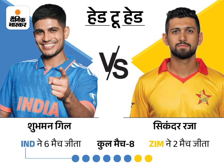 शुबमन गिल की कप्तानी वाली भारतीय क्रिकेट टीम पांच मैचों की टी20 सीरीज खेलने के लिए जिम्बाब्वे पहुंची। दोनों टीमें शनिवार को हरारे स्पोर्ट्स क्लब में पहले टी20 मैच में भिड़ेंगी. आंकड़ों के हिसाब से भारतीय टीम मेजबान जिम्बाब्वे से बेहतर है. हालाँकि, टीम इंडिया की इस टीम में शामिल खिलाड़ी युवा हैं। इस दौरे पर रियान पराग, अभिषेक शर्मा और तुषार देशपांडे अपना अंतरराष्ट्रीय डेब्यू कर सकते हैं। दोनों टीमें टी20 अंतरराष्ट्रीय क्रिकेट में 8 बार एक-दूसरे से भिड़ी हैं, जहां भारत ने 6 मैच जीते हैं जबकि जिम्बाब्वे ने 2 मैच जीते हैं।