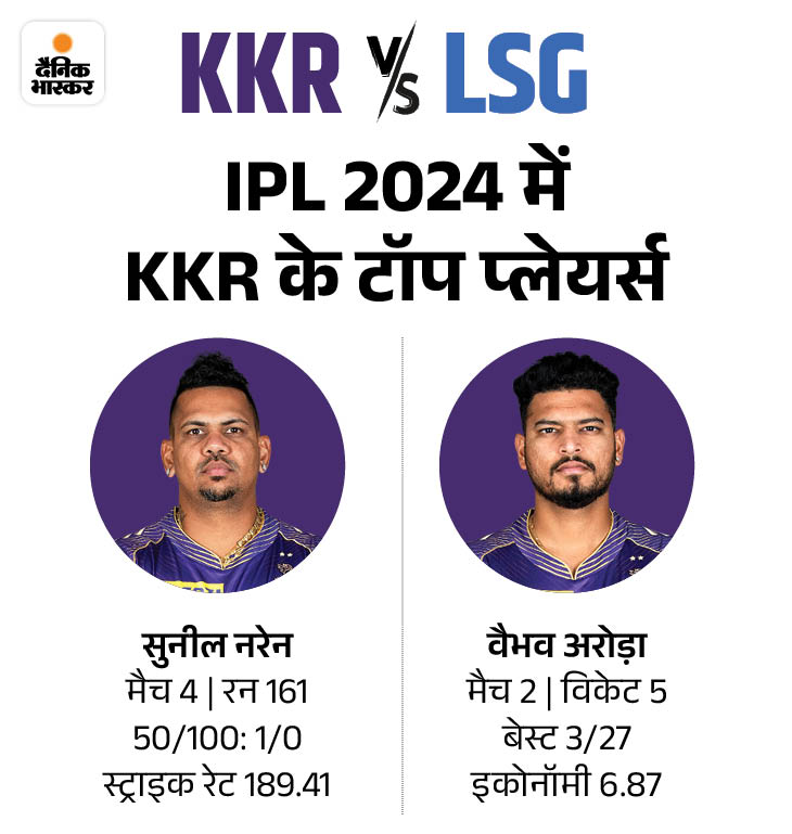 टीम के कप्तान श्रेयस अय्यर अब तक चार मैचों में फिट नहीं हो पाए हैं. टीम के टॉप स्कोरर सुनील नरेन हैं. उन्होंने चार मैचों में 161 रन बनाए हैं. गेंदबाजी में वैभव अरोड़ा टॉप पर हैं. उन्होंने सिर्फ दो मैचों में पांच विकेट लिए हैं.
