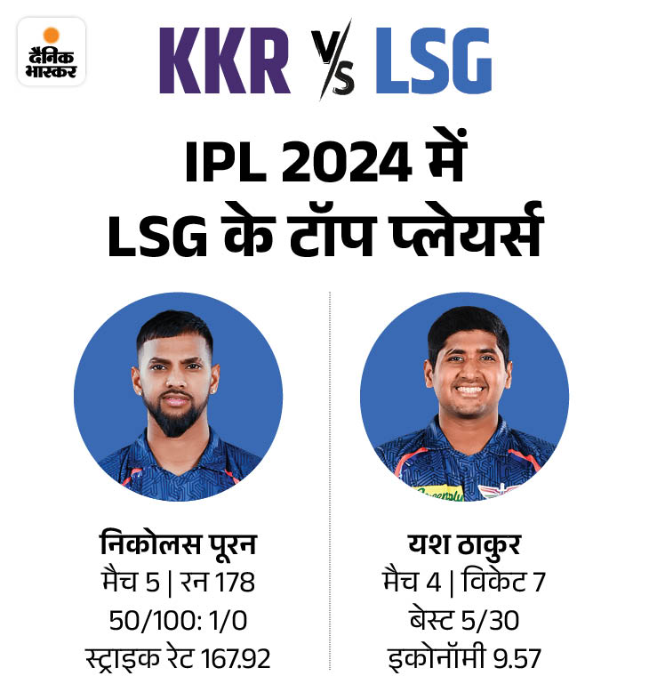 इस मैच में टीम को तेज गेंदबाज मयंक यादव की भी कमी खलेगी. उनका यह मैच खेलना भी मुश्किल है, पूरी तरह फिट नहीं होने के कारण वह पिछले मैच में भी नहीं खेले थे. टीम के लिए सबसे ज्यादा रन निकोलस पूरन ने बनाए हैं. दाएं हाथ के तेज गेंदबाज यश ठाकुर ने सबसे ज्यादा विकेट लिए हैं.